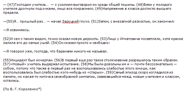 На начальном этапе взросления личности важно, чтобы рядом находился мудрый, добрый, отзывчивый, понимающий человек, способный с умом передать свой жизненный опыт. В данном тексте В.Г. Короленко поднимает проблему влияния учителя на учеников.