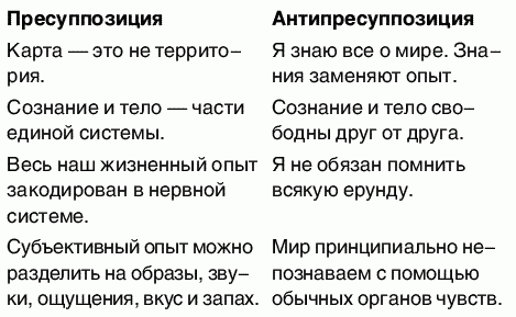 Специалисты по нейролингвистическому программированию употребляют такие термины, как карта, сознание и тело.